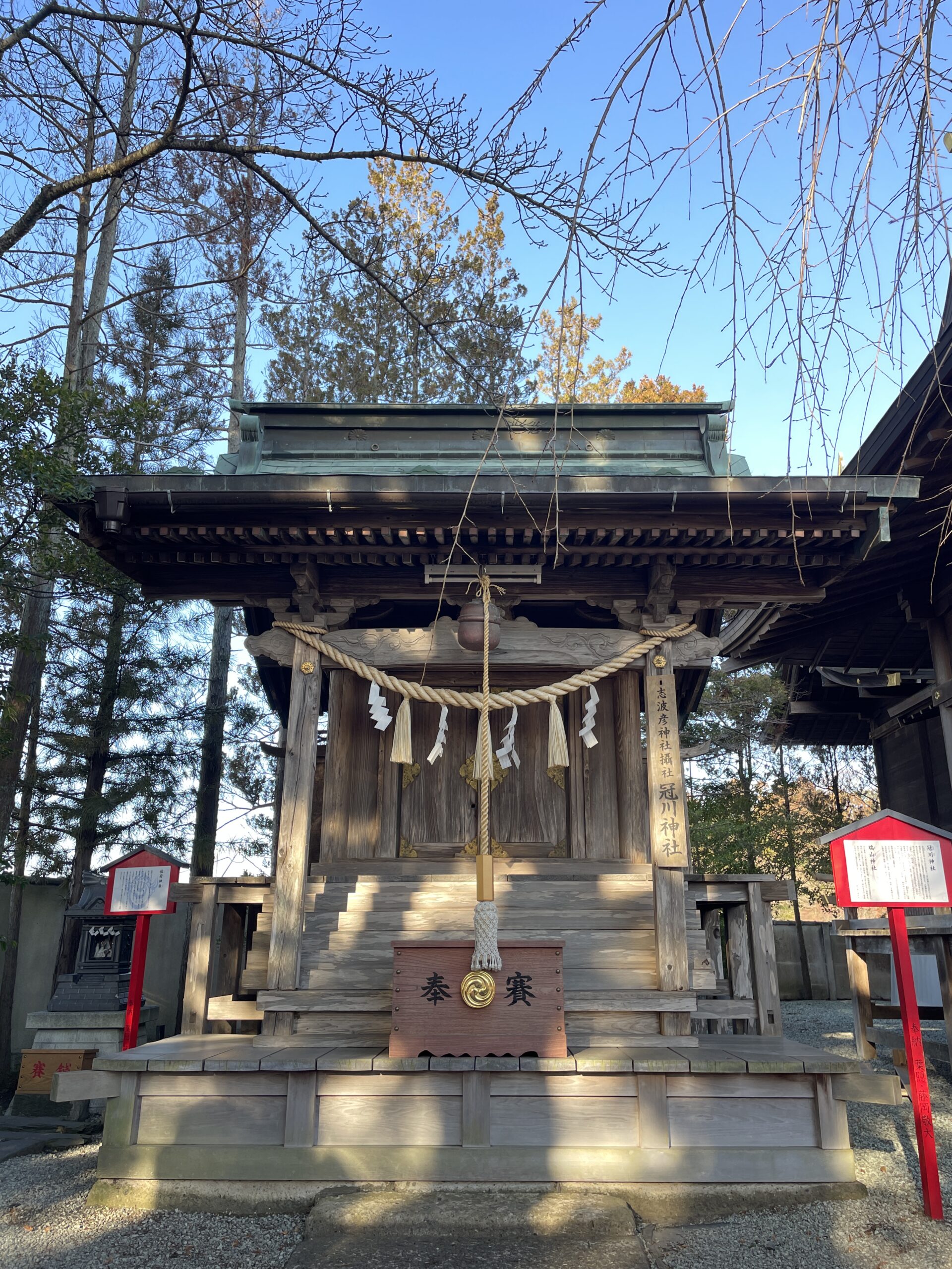 志波彦神社摂社 天正に縁起を焼失し、沿革不詳だが本社は延喜式内名神大社志波彦神社で、いつの頃か甚だしく衰微していたが、延宝三年の再建には堅石五尺横六尺の小祠になり、しかも、摂社である天王社(神仏習合の際の仙台八坂神社)と並び立つ様であった。明治四年五月十四日、官国幣社規定に当り国幣中社に列せられたが、社地が狭いため社殿造建不可なる理由により、明治七年十二月二十四日、鹽竈神社へ遷座。明治十年三月三十一日、官許を得て志波彦神社分霊を岩切村の旧社に奉遷して、冠川神社と称し、国幣中社(志波彦神社鹽竈神社)の摂社に指定された。